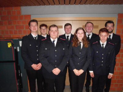 Im weiterem Verlauf der Versammlung wurden nach vollendeter Anwärterzeit und Absolvierung der Prüfung zur Truppfrau bzw. zum Truppmann mit Kevin Fellner, Wendelin Kirsten, Thore Koop, Laurin Leitow, Joe Schäkel, Lasse Schwarzloh, Emilia Starke und Hendrik Stock gleich acht neue Mitglieder in die Einsatzabteilung überführt und zu Feuerwehrleuten ernannt. Zudem erhielt Bennet Sander eine Beförderung zum Oberfeuerwehrmann. Alsdann wurde Guido Wolf für seine 10jährige Dienstzeit geehrt. Auf 20 Jahre können Markus Fricke und David Jenzen zurückblicken. Abschließend erhielten Jürgen Fricke und Harald Siemers die entsprechende Anstecknadel für ihre 50jährige Dienstzeit. Darüber hinaus bekam Oberbrandmeister Fricke als erster Angehöriger der Kastorfer Feuerwehr das Brandschutz-Ehrenzeichen am Bande in Gold für seine 50jährige Mitgliedschaft im aktiven Feuerwehrdienst ausgehändigt.
