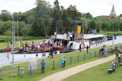 Historischer Raddampfer „Kaiser Wilhelm“ passiert Berkenthiner Schleuse