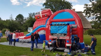 „Die Hüpfburg dient der Nachwuchsgewinnung der Jugendfeuerwehr für Veranstaltungen und steht auch für das Dorf- und Kinderfest in Bliestorf zur Verfügung“, erläutert Stefan Krüger, Jugendwart der Jugendfeuerwehr Bliestorf. Mit einem vorhandenen Gebläse ist die Hüpfburg in ca. 15 Minuten komplett aufgebaut. Der Abbau dauert dann allerdings deutlich länger. Die Hüpfburg kann auf Anfrage auch von anderen Jugendfeuerwehren und Gemeinden für gemeindliche Veranstaltungen genutzt werden. Die Jugendfeuerwehr freut sich in diesem Fall über eine „Unterstützung“. Zurzeit hat die Jugendfeuerwehr Bliestorf 16 Kinder und Jugendliche der Jugendwart „Korl“ und sein Stellvertreter Frederik Rudolf werden von vier jungen aktiven Kameraden bei der Ausbildung der Kids unterstütz.