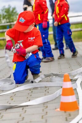 Zur Jubiläumsfeier am 13.07.2024 kamen nicht nur die Mitglieder der Kinderfeuerwehr, sondern auch die Eltern, Großeltern, Geschwister und zahlreiche Gäste dazu. Besonderes Highlight war die Übergabe eines Miniatur-Löschfahrzeuges für die Jüngsten der Berkenthiner Wehr. Das Fahrzeug wurde in ehrenamtlicher Arbeit selbst erstellt. Rund 1.500 Arbeitsstunden brachte ein Team aus Spezialisten für Holz- und Metallbearbeitung sowie Elektronik zusammen. Entstanden ist ein Fahrzeug mit allem, was die Kinder für ihre Dienste brauchen, z. B. Funkgeräte, Schläuche und Strahlrohre und noch ein paar Extras obendrauf. Die Kosten von 7.500,00 € konnten komplett über Sach- und Geldspenden finanziert werden. Das Fahrzeug mit der Funkrufnummer 80-99-1/2 wurde vom Bürgermeister der Gemeinde, Friedrich Thorn, offiziell übergeben.
