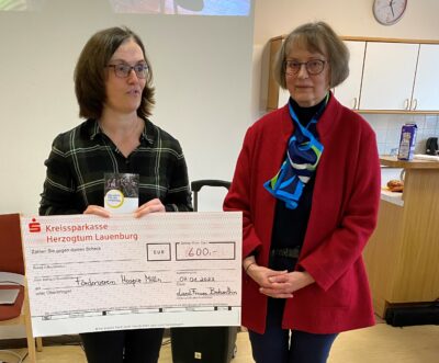 Anlässlich des Neujahrsfrühstücks konnte der Vorstand an den Förderverein Hospiz Mölln e. V., vertreten durch Frau Dr. Karina Zühlsdorf, eine Spende von 600,00 € überreichen. Gleichzeitig leisten die Landfrauen Berkenthin eine Spende an die von der Flutwasserkatastrophe betroffenen Menschen im Ahrtal. Der Jugendtreff Mayschoss erhält zum Wiederaufbau eine Spende von 2.200,00 €. Die Landfrauen planen für 2024 einen Besuch der dortigen Landfrauen, um sich ein Bild vom „Wiederaufbau“ machen zu können.