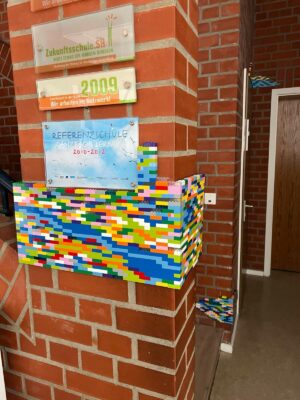 Von diesem Zeitpunkt an übernahm die Fachschaft Kunst mit Lehrerin Susi Schmoller die Schirmherrschaft und entwickelte mit den Schüler*innen mehrerer Jahrgänge Ideen für die Ausgestaltung des Schulgebäudes in Krummesse mit Legosteinen.