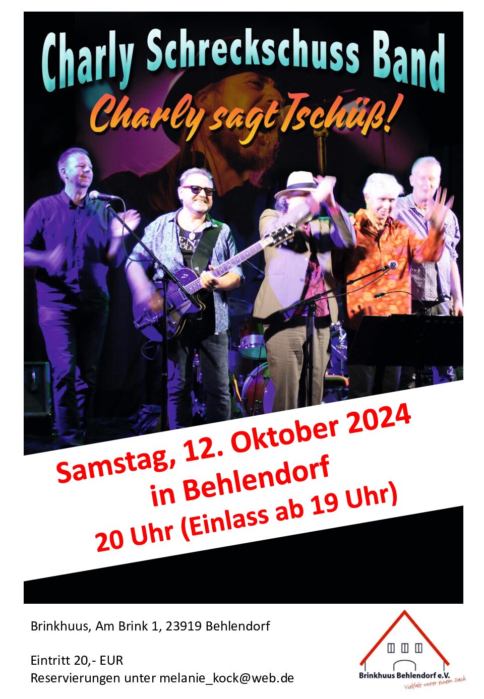 Charly sagt Tschüs! Der Brinkhuus Behlendorf e. V. bewirbt den Auftritt am Samstag, 12.10.2024 im…
