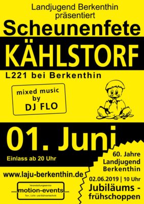 Kählstorf/Berkenthin (pm). Am Sonnabend, 1. Juni, ist es wieder so weit, die Landjugend (LaJu) Berkenthin veranstaltet nun schon zum fünften Mal die Scheuenfete in Kählstorf an der L221 bei Berkenthin. Begleitet durch Musik von DJ Flo werden die Gäste ab 20 Uhr von der LaJu erwartet.