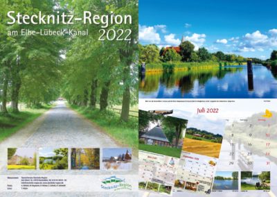 Ab sofort ist der Wandkalender „Stecknitz-Region 2022“ im Handel erhältlich. Der Monatskalender – im DIN A3-Format – enthält stimmungsvolle Bilder, die allesamt von Fotografen aus unserer Nachbarschaft fotografiert wurden. Dreizehn großformatige Motive schmücken Titelseite und zwölf Kalenderblätter. Dazu gibt es zahlreiche kleine Bilder aus allen Gemeinden der Stecknitz-Region.