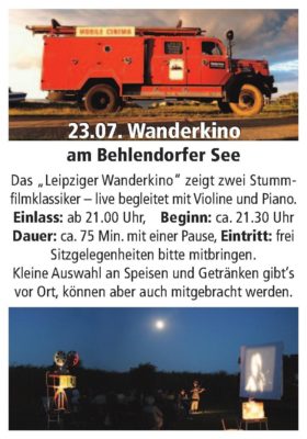 Das „Leipziger Wanderkino“ zeigt zwei Stummfilmklassiker – live begleitet mit Violine und Piano. Einlass ab 21:00 Uhr, Beginn ca. 21:30 Uhr. Dauer 75 Minuten mit einer Pause. Eintritt frei. Am Eingang werden mit Blick auf Corona die Kontaktdaten erhoben.