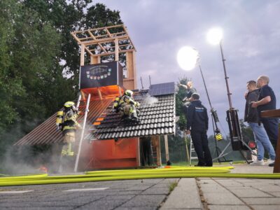 Neben der einheitlichen Geräteausstattung der Feuerwehren ist eine fundierte Ausbildung an der in Eigenleistung erstellten Dachstuhlattrappe der Schlüssel für die erfolgreiche Anwendung des neuen Systems zur Sicherung der eingesetzten Feuerwehrkräfte.