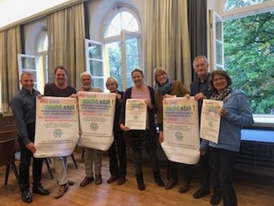 „Mut verbindet – Menschenwürden achten“ unter dieses Motto hat das Ratzeburg-Berkenthiner Organisationsteam die diesjährige Demonstrationsveranstaltung „Wir sind nicht still!“ am Reformationstag gestellt (vl.) Bürgermeister Gunnar Koech, Mark Sauer, Götz Salisch, Ulla Redecker, Gesine Biller, Pröpstin Frauke Eiben, Pastor Wolfgang Runge und Maike Bendig © Stadt Ratzeburg